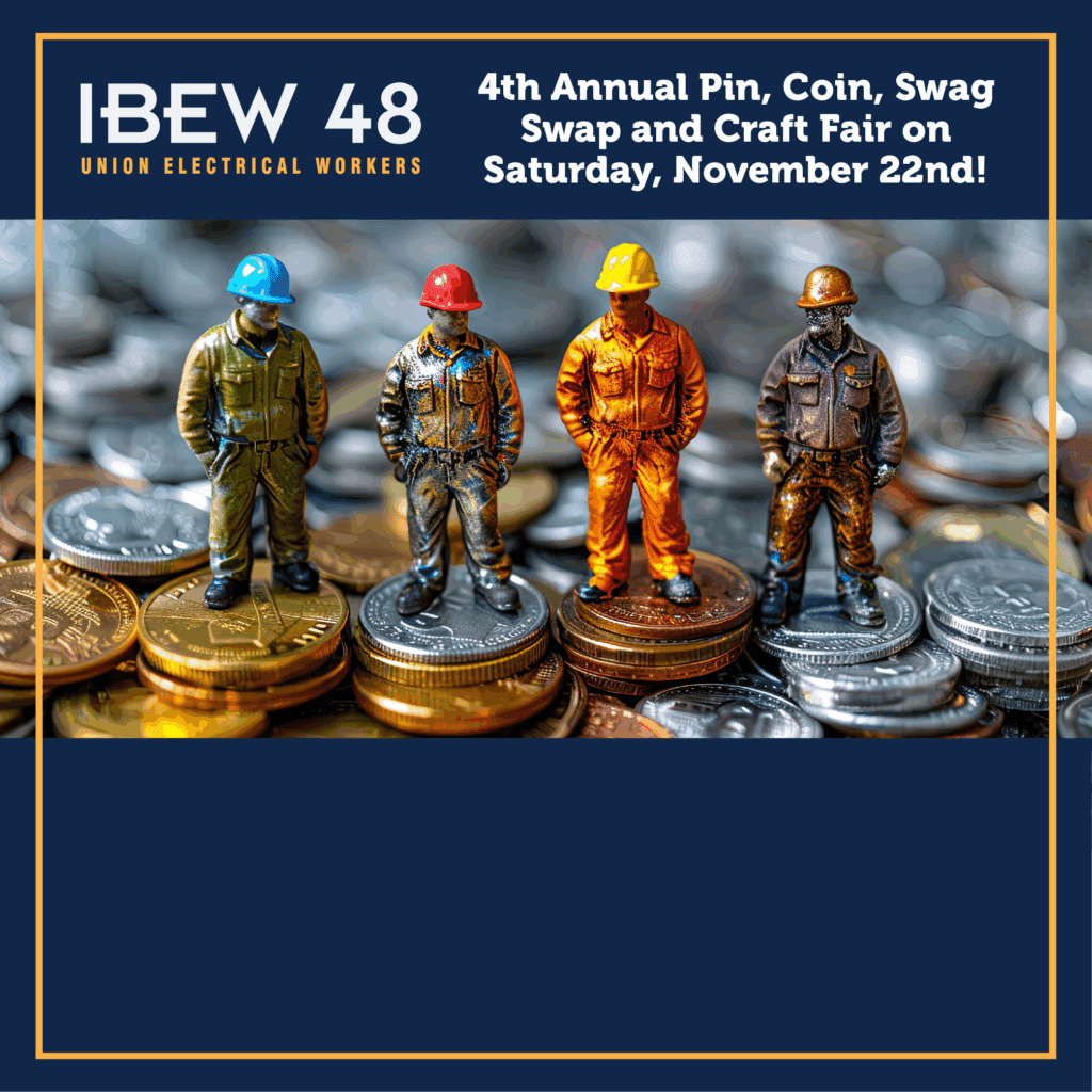 The 4th annual Local 48 Coin, Pin, Swag Swap and Craft Fair will be held at the Hall from 10am to 3pm on Saturday, November 22nd!