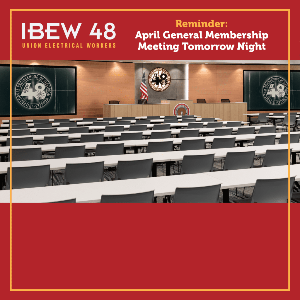 Join us at the April General Membership Meeting tomorrow night! It will take place at 6pm at the Local 48 meeting hall, with simulcasts at the Aloha Grange and the Longview Hall. Doors open at 5pm.