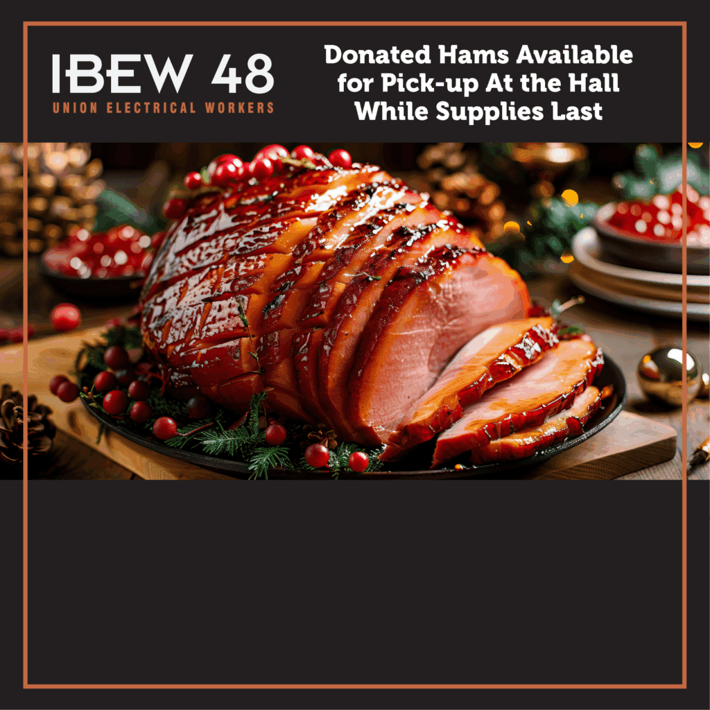 We have over 100 donated hams at the Hall that are available for members to take! Come by during business hours to pick one up. They are available while supplies last on a first-come, first-served basis.