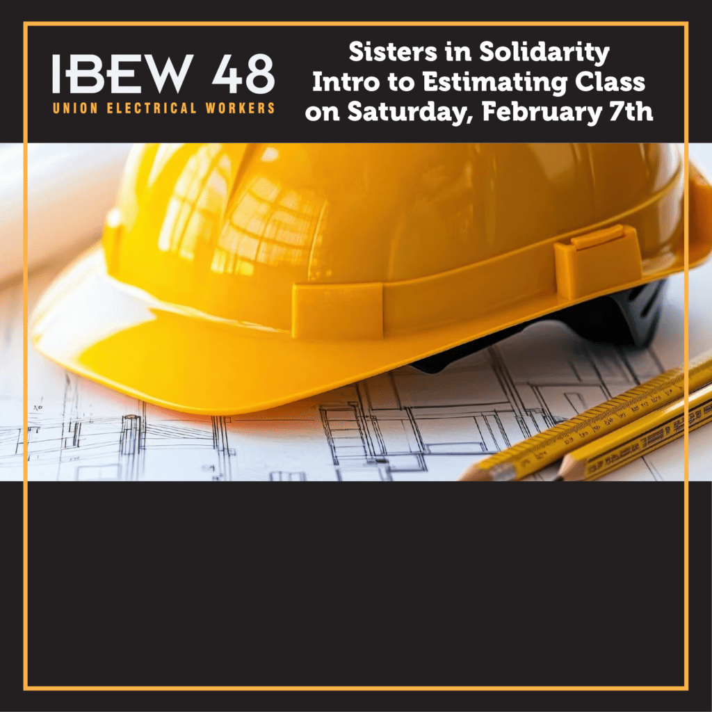 The Sisters in Solidarity are hosting a free Intro to Estimating class at the Training Center on Saturday, February 7th, from 9am to 1pm. It will cover bidding for small tenant improvements, strategies for sourcing parts and pricing, and understanding and applying labor rates to jobs