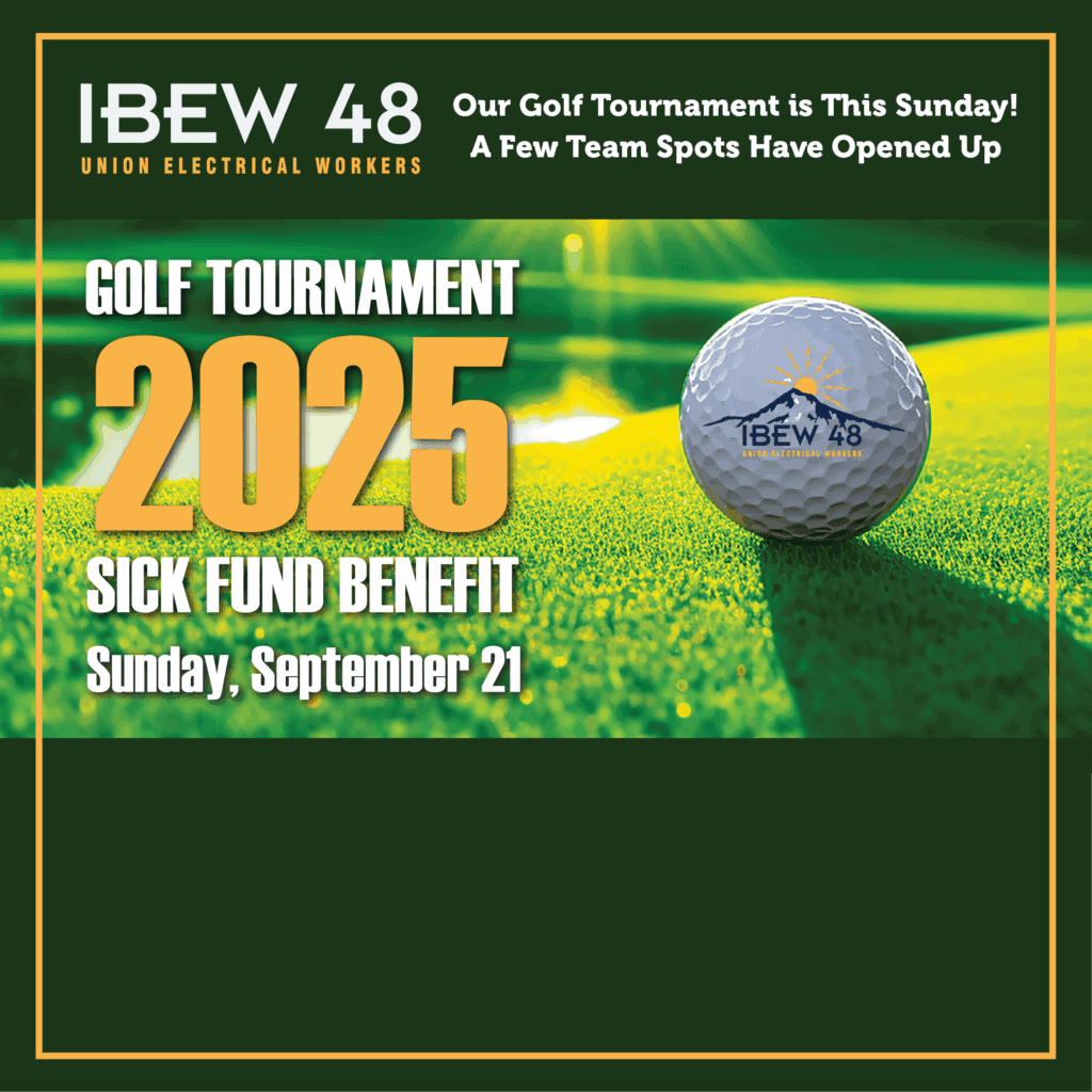 We’re looking forward to the Local 48 Golf Tournament and Sick Fund Benefit this Sunday at Heron Lakes! It looks to be another highly successful event thanks to our players, sponsors, and volunteers!