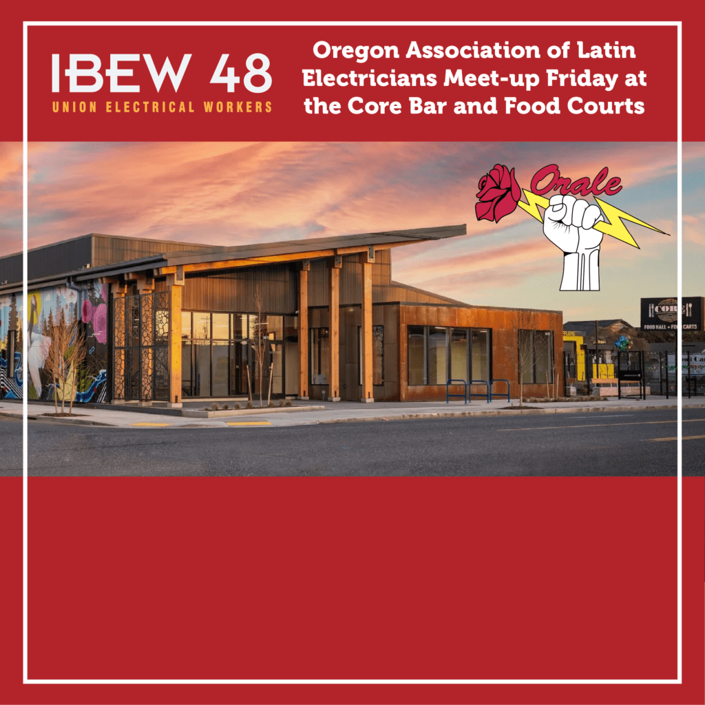 The Oregon Association of Latin Electricians (ORALE) is having a social meet-up at 6pm this Friday, January 23rd, at the Core Bar and Food Courts. All are welcome to join!