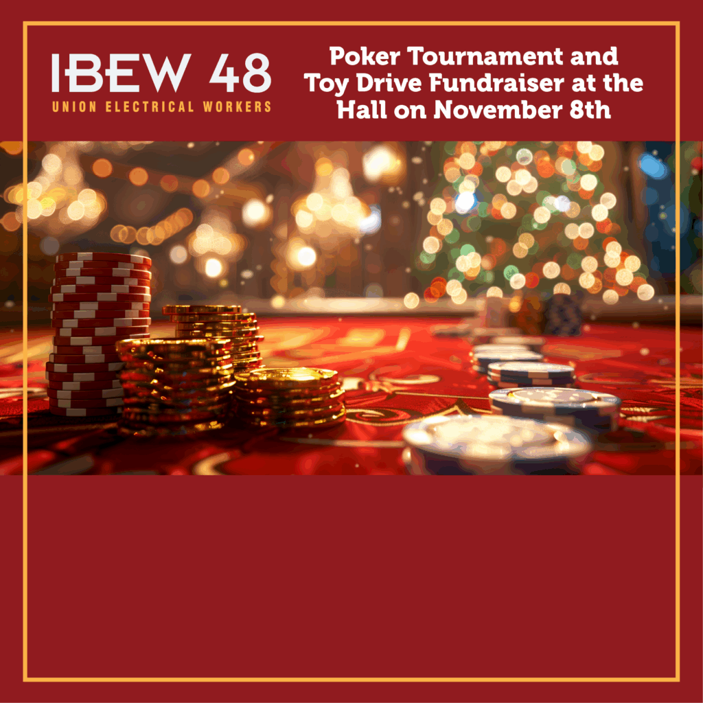 Join us at the Hall on Saturday, November 8th, for a Texas Hold’em Poker Tournament to raise funds for the Holiday Toy Drive!