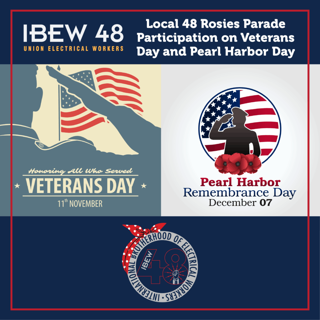 The Original Rosies will ride on the trolley, and we’ll proudly walk behind them, representing IBEW Local 48, women in the trades, and the Rosie legacy. Each participant will be responsible for their own travel costs, but this is a WONDERFUL opportunity to stand beside the women who helped shape history and to celebrate the strength, service, and resilience of our veterans and Rosies.