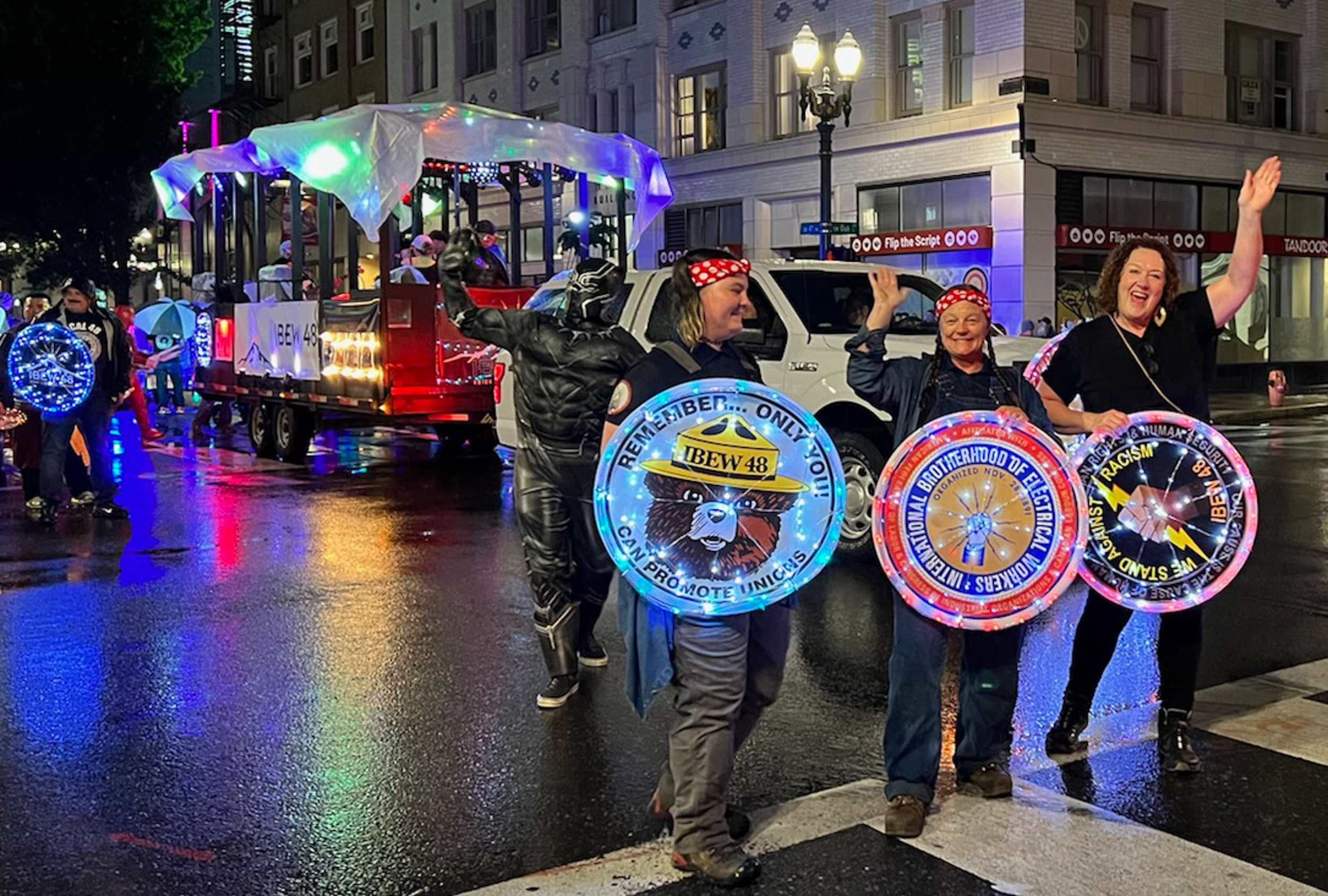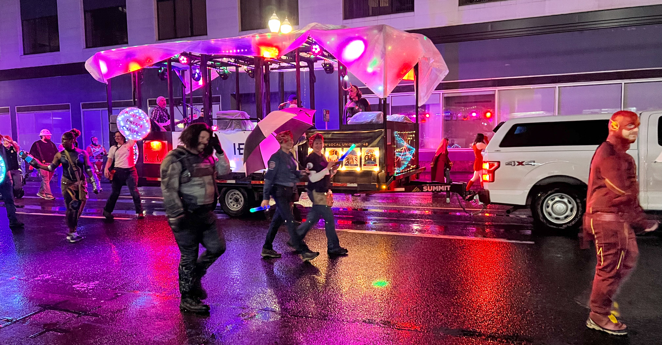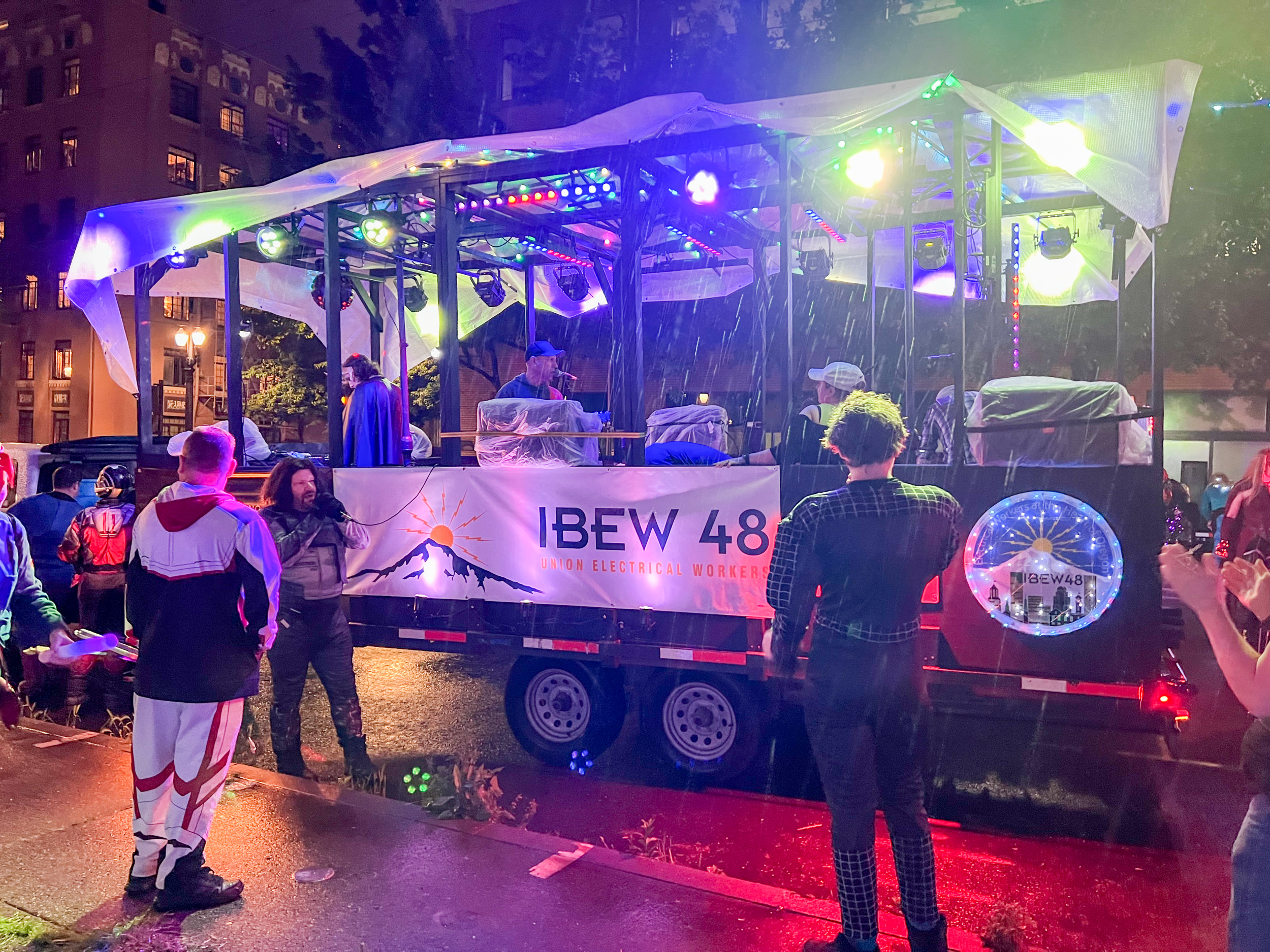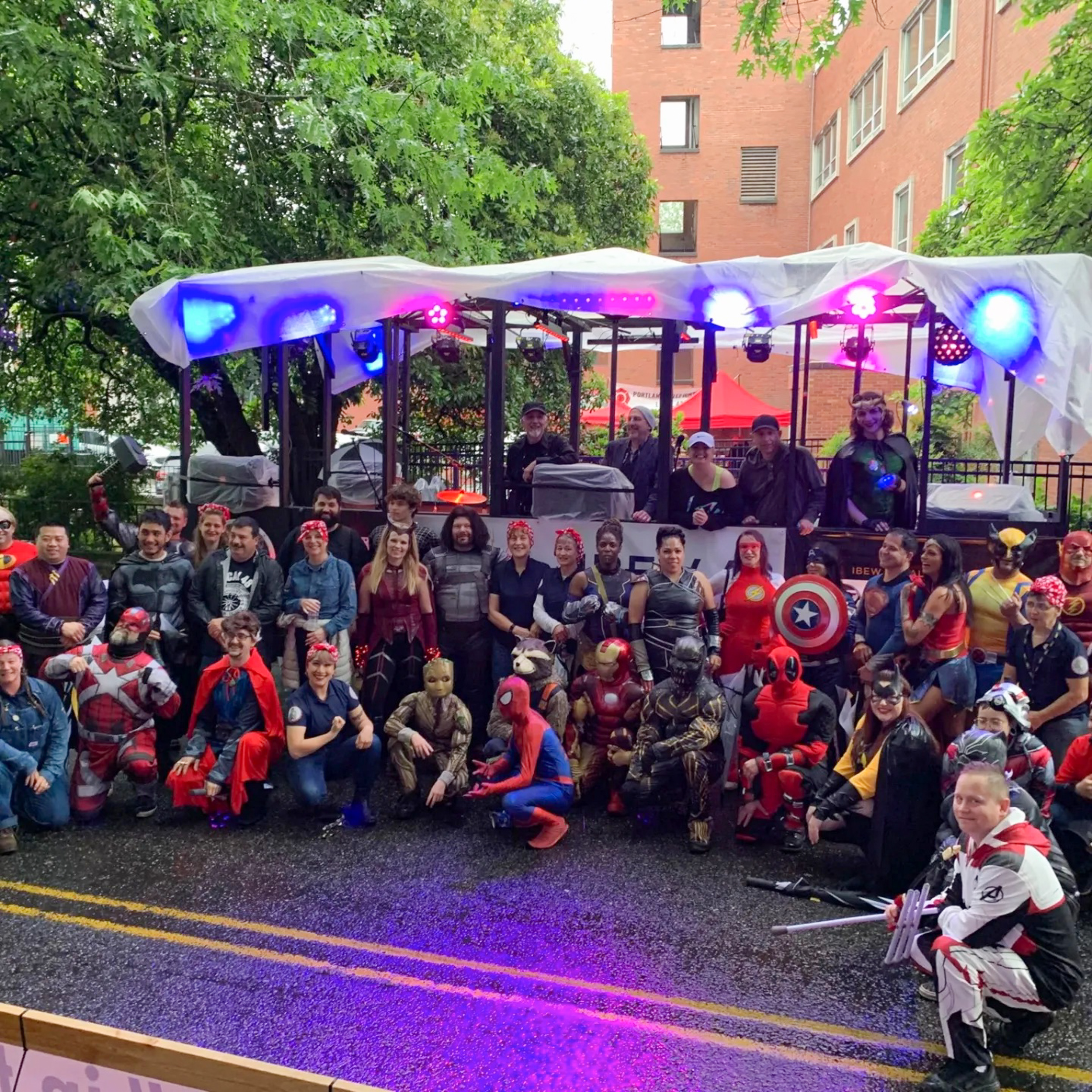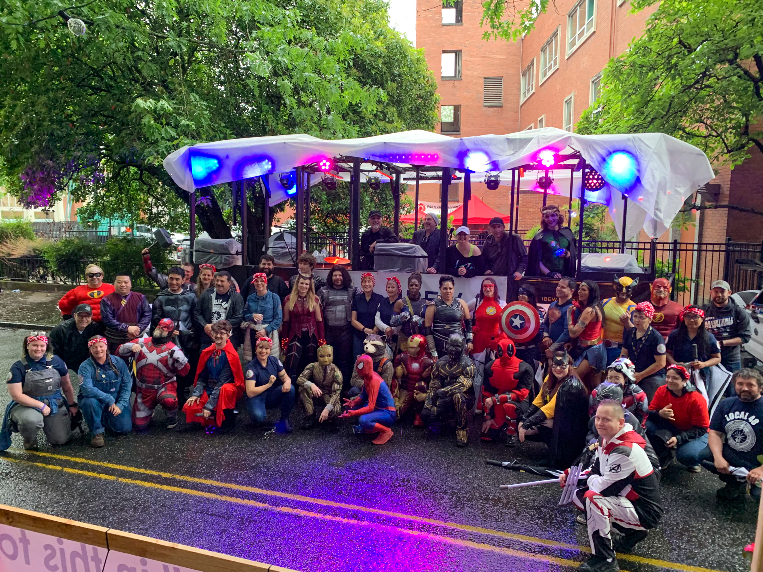 IBEW 48 Starlight Parade Team and Float 2022 July 26, 2022 Matt Smyth headed up the efforts to rally an amazing team of Super Heroes, a live band and a mobile lightshow for those in attendance at the 2022 Starlight Parade in Portland, Oregon.