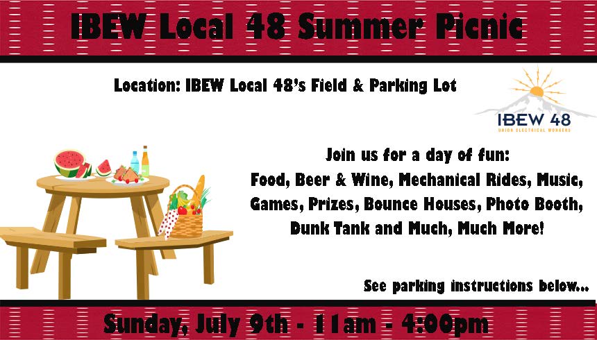 and we will have Handicap parking in front of the IBEW Local 48 Hall.