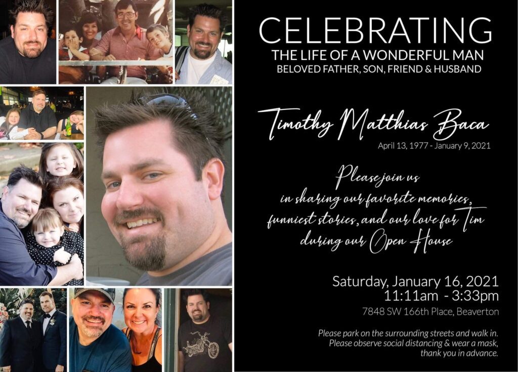 Timothy joined Local 48 in August 2017. A celebration of life will be held on January 16th from 11:11am – 3:33pm at 7848 SW 166th Place, Beaverton. Please park on the surronding streets and walk in. Please observe social distancing and wear a mask, thank you in advance.